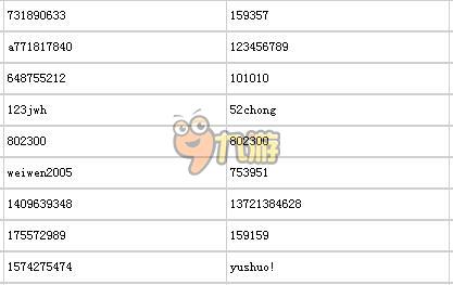 大区 账号 密码 拥有道具