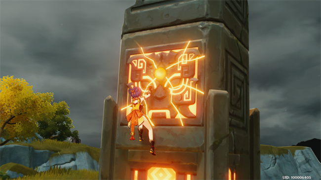 4、需要注意的是,每个石柱的互动点位置不动,找准位置之后再往上爬。