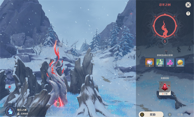 2、在供奉忍冬之树至8级后,可以解锁绯红之愿;