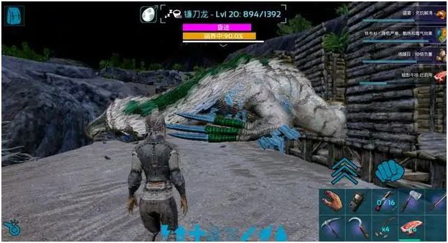 2.方舟生存进化驯龙食物准备:击晕恐龙后,恐龙饱腹度下降之后,可通过投喂食物,增加恐龙驯养值,当到达100%后则表示驯养成功。这其中要注意一下几点: