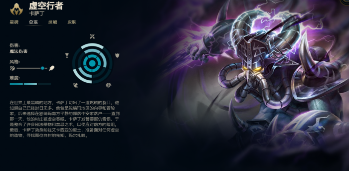 总结起来,卡萨丁是一位需要前期稳住对线,发育起来能够完全接管比赛的英雄,相比于其他英雄,它极端放大了前期的劣势和后期的统治力。